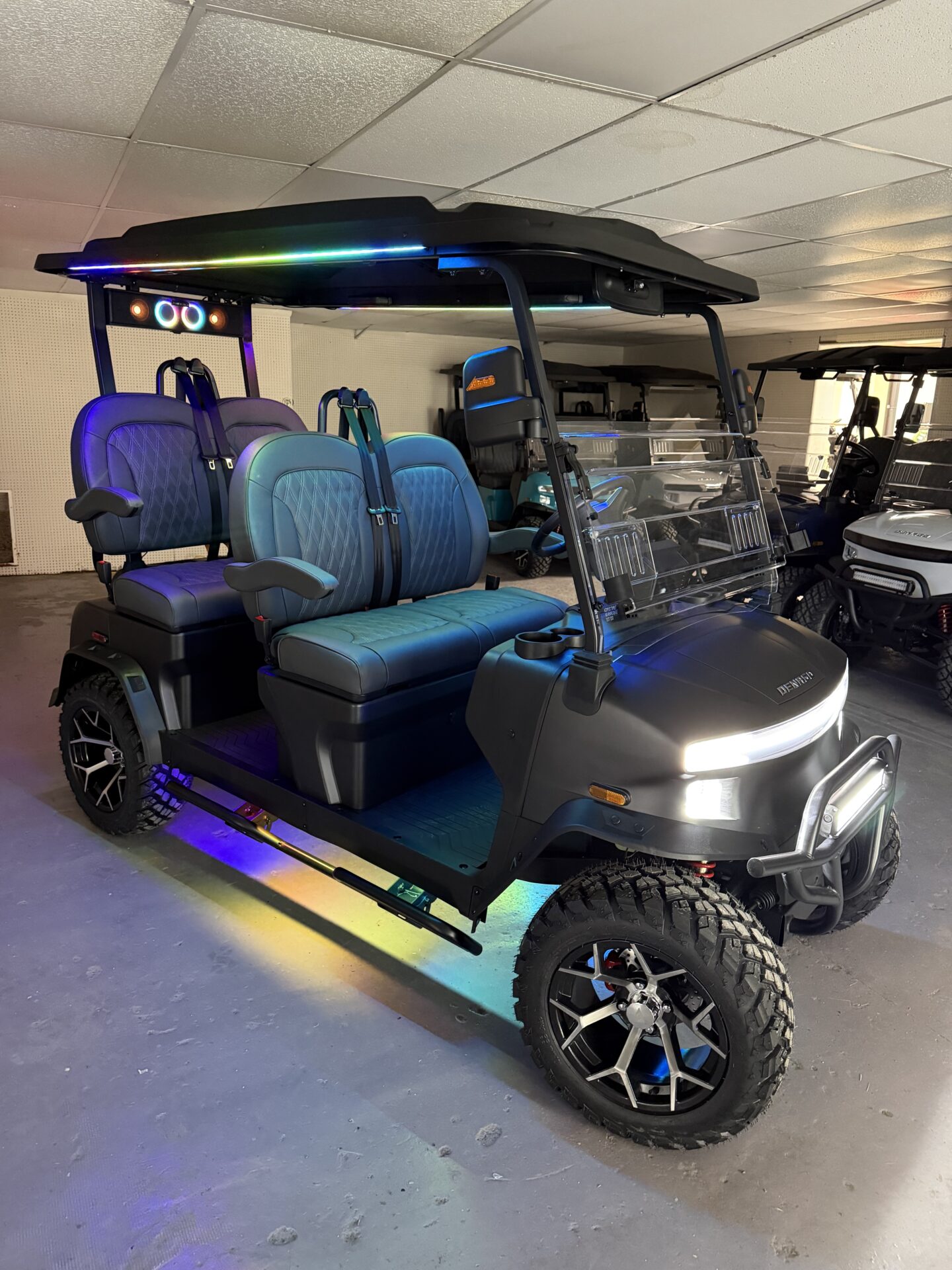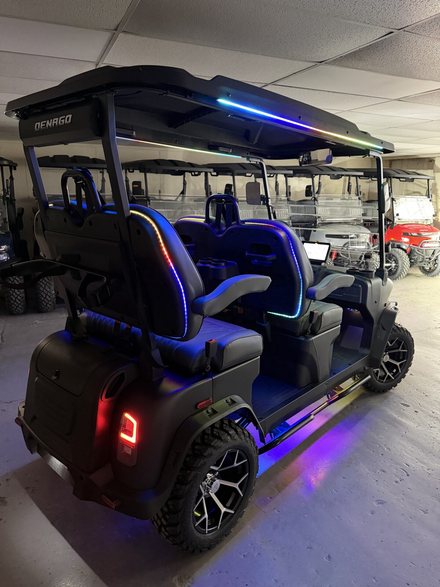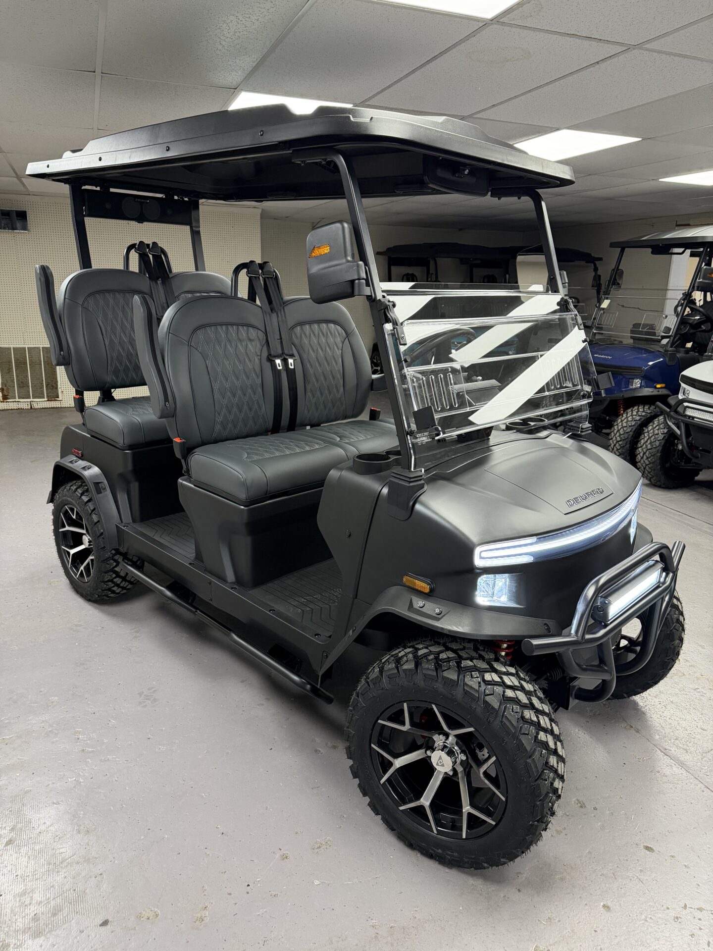 Unleash the future of leisure transportation with the brand-new 2026 Denago EV Rover XL, a cutting-edge electric golf cart designed for those who value style, comfort, and eco-friendly innovation. This modern marvel is not just a golf cart; it’s an experience, redefining what it means to travel around the green or through the neighborhood. The Rover XL showcases a sleek and contemporary design that is sure to turn heads. Its aerodynamic silhouette and bold lines are complemented by a sophisticated color palette, making it a standout choice for any golf course or community. Built with Denago’s commitment to quality and innovation, this model offers unparalleled performance and sustainability. Powered by an efficient electric motor, the Rover XL delivers a whisper-quiet ride without compromising on power. Say goodbye to emissions and hello to a cleaner, greener way to travel. Its advanced battery technology ensures a long-lasting charge, letting you enjoy the journey without worrying about running low on power. Inside, the Rover XL is all about comfort and convenience. With a seating capacity of four passengers, it’s perfect for family outings or a relaxing trip with friends. The seats are plush and ergonomically designed, providing maximum comfort for all-day adventures. The intuitive dashboard is equipped with the latest tech, offering easy access to controls and features that enhance your driving experience. Whether you’re navigating the fairways or cruising through your neighborhood, the 2026 Denago EV Rover XL offers a smooth and responsive ride. Its superior suspension system absorbs bumps with ease, ensuring a comfortable journey on any terrain. For those who demand style, performance, and sustainability, the Denago EV Rover XL is the ultimate choice. Don’t miss the chance to own this brand-new, state-of-the-art electric golf cart and be a part of the future of transportation. Experience the perfect blend of luxury and efficiency that only Denago EV can deliver.